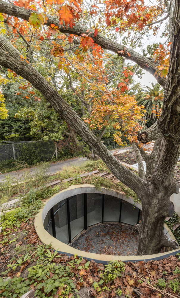 Этот дом с использованием цветного бетона и кирпича для обрамления «извилистой» серии террас и комнат был спроектирован для пары, ищущей убежища от работы в городе. Архитекторы организовали дом как группу кубических форм, расположенных вокруг центрального круглого двора. Пространства между ними были использованы для создания серии небольших садов и террас, следующих по пути солнца...