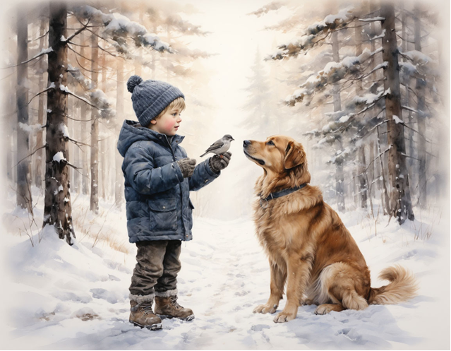 Он показал Ване, как нужно замереть, вытянув руку ладонью вверх, на которой лежали семечки. Мальчик стоял, не дыша. И случилось чудо. Сначала одна, потом ещё несколько синичек-пухляшек, ярких, как солнечные зайчики, вспорхнули с ветки и, не боясь, уселись к нему на пальцы, забирая семена. Ваня смотрел на крошечную птичку, сидящую у него на руке, с благоговением, будто держал драгоценный, живой самоцвет. В его глазах читался восторг.