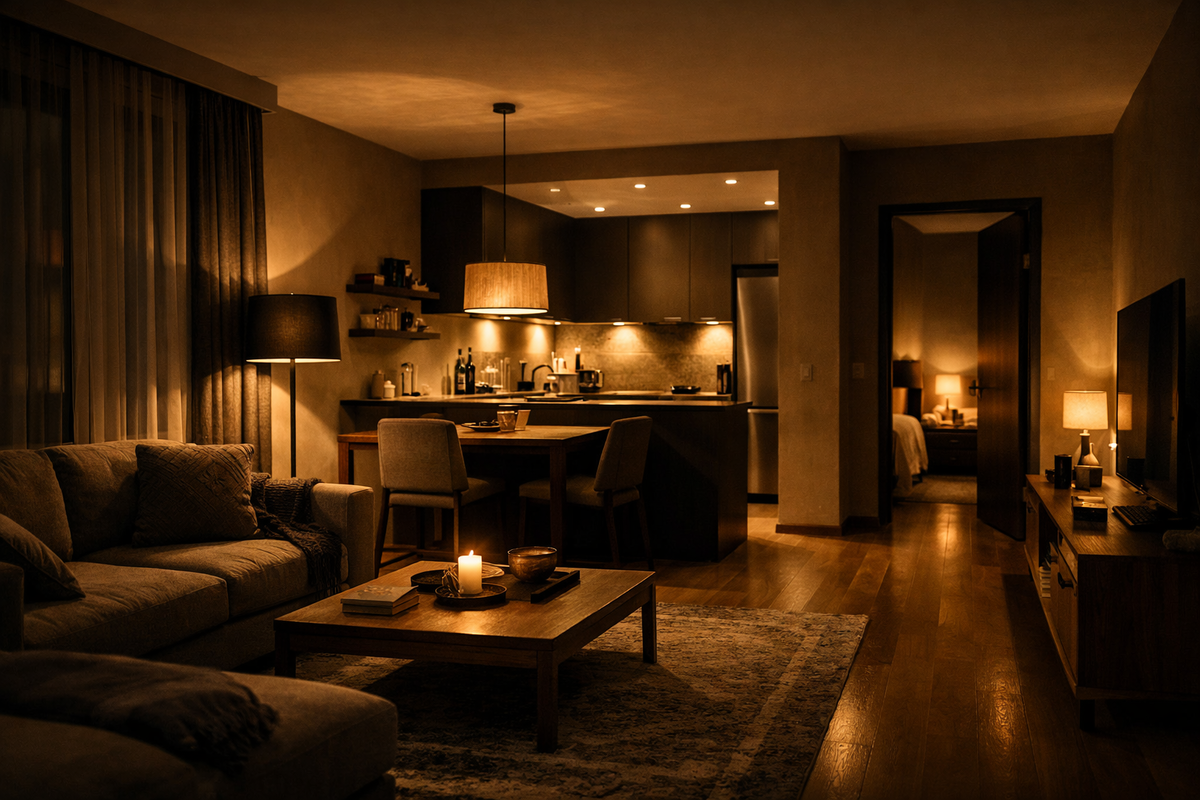 Не грубо, не очевидно — тихо. Открытые пространства выглядят просторно, но усиливают шум и свет.
