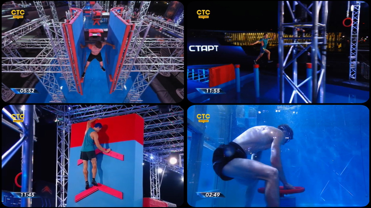 Там нужно было и прыгать, и перелетать с турника на турник, и плыть под водой... В конце каждого этапа спортсмены должны были схватить светящееся кольцо. Всего таких колец было 6.
