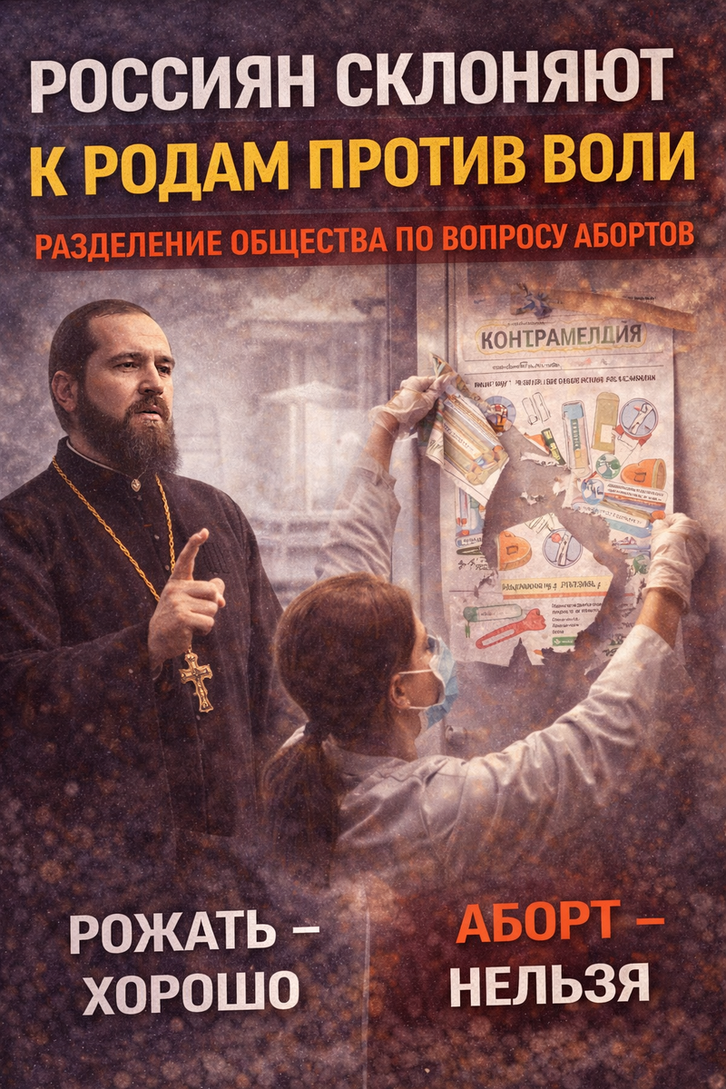 Сегодня активно пропагандируется тренд на деторождение в любом возрасте. Под идеологию РПЦ давно стали приниматься множество законов, хотя на бумаге церковь и отделена от государства, но чем дальше, тем больше прослеживается её влияние. Пока часть людей не готова мирится с бесчеловечными посылами батюшек, и оправдывать туже пдф*лию и ранние роды. Положительный пример произошел в Саранске: мировой суд оштрафовал мужчину на 5 тысяч рублей по делу о «склонении к аборту». Этот случай стал первым в России, сообщает фонд «Женщины за жизнь». Мордовия — первый российский регион, где был принят закон о запрете «склонения» к абортам. Но есть и обратные примеры. Посмотрите на кадры: как показательно, на камеру в одной их клиник сорван плакат о контрацепции... Якобы женщинам не дозволителен выбор, ведь идет война, надо побольше рожать, зачем учиться в ВУЗах молодежи? Иди воевать и рожать, тем более, что денег на стипендии и на пенсии нет... А давайте посмотрим на источник: а кто стоит за чиновник
