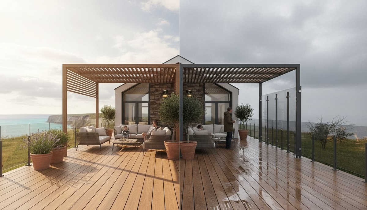 В Крыму терраса в июле — мечта, в ноябре — сырая и продуваемая. 🌞 Три критичных пункта: 1) Ориентация — летом нужна тень на юге, зимой — поймать солнце; 2) Ветер — жёсткие ограждения и навес, рассчитанные на порывы 🌬️; 3) Материалы — дешевая доска выцветает и деформируется; выбирайте UV‑ и термостойкие, нескользкие покрытия 🪵. Оптимальная площадь для семьи — 18–25 м²: меньше — тесно, больше — лишние метры. Мы в Box House (монолит по SCIP) проектируем террасы под климат и ветер. Какую вы бы предпочли — тёплую солнечную или затенённую?