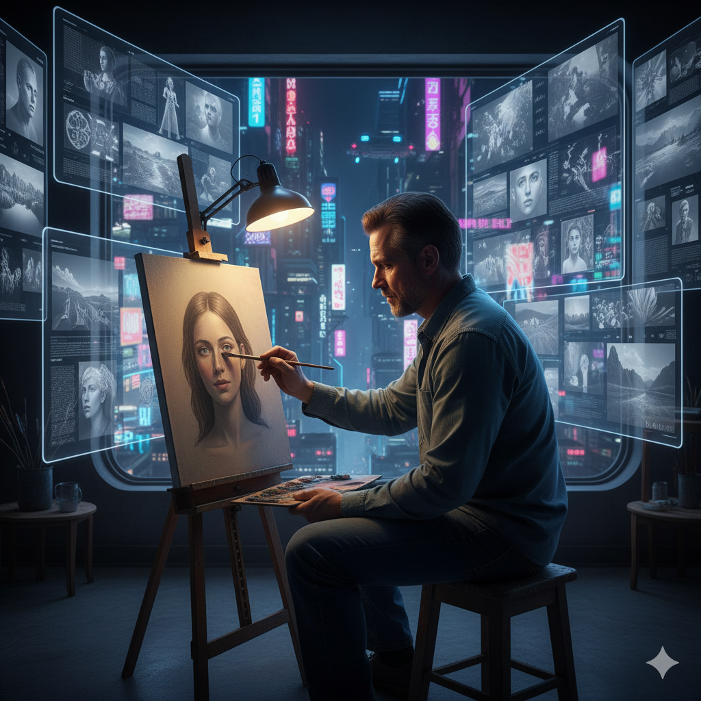 Представь: 2035 год. Ты хочешь посмотреть фильм, которого не существует. Ты вводишь описание, и через пять минут нейросеть выдает тебе шедевр с любимыми актерами в главных ролях. Но есть проблема: «живых» творцов больше нет. Первые 3 года: Золотой век контента. Количество сериалов, картин и песен увеличивается в миллионы раз. Каждый человек — режиссер и композитор. Однако вскоре наступает «цифровое ожирение». Контента так много, что он обесценивается. Художники и писатели выходят на массовые протесты, требуя «налога на ИИ», но прогресс не остановить. 10 лет спустя: Смерть авторства. Мы больше не знаем имен создателей. Музыка пишется под твой пульс в реальном времени, картины в твоем доме меняются в зависимости от твоего настроения. Исчезает само понятие «хита» или «бестселлера», потому что у каждого — своя персональная культура. Но люди начинают замечать, что ИИ-искусство, хоть и идеально, лишено «ошибок» и боли, которые делали человеческое творчество живым. 20 лет спустя: Культ «ручн
