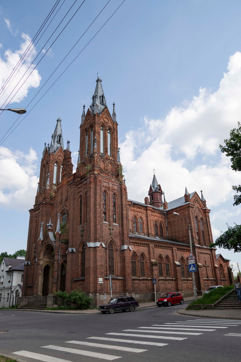 На момент написания этой статьи, а это, на минуточку, 2025 год, костел уже отдан верующим и в нем идет реставрация. Костел Непорочного Зачатия Пресвятой Девы Марии Римско-Католической Церкви построен на месте старого костела в 1898 году про проекту архитектора Мейшнера, в неоготическом стиле. Новый костел был больше прежнего, в который прихожане уже не помещались. Улица, которая сейчас называется ул. Урицкого, раньше назвалась Костельная. Рядом была польская слобода и все священники были поляками, как и сейчас.