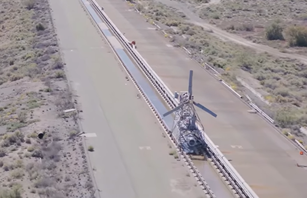 Иногда инженерные решения выглядят как загадка, оставленная нарочно — будто кто-то хотел, чтобы через десятилетия мы снова и снова спрашивали: зачем они это сделали? Именно таким кажется странный эпизод из истории Bell: реактивная санная платформа, мчащаяся по рельсам, и… ветряная мельница спереди. На первый взгляд — абсурд. Почти шутка. Но за этим «ветряком» скрывается одна из самых дерзких идей в авиации XXI века. На испытательном полигоне всё начиналось вполне привычно. Ракетные сани разгонялись не взрывом и не реактивной струёй, а турбовинтовым двигателем. Пропеллер работал как у обычного самолёта — тянул платформу вперёд, шаг за шагом ускоряя её. А потом происходило нечто неожиданное. Мощность сбрасывали. Винт переводили в режим флюгирования — лопасти разворачивались так, чтобы поток воздуха перестал их вращать. Пропеллер замирал. И в этот момент, пока сани всё ещё неслись на огромной скорости, механизм делал следующее: лопасти… складывались. Мельница исчезала. Сани продолжал