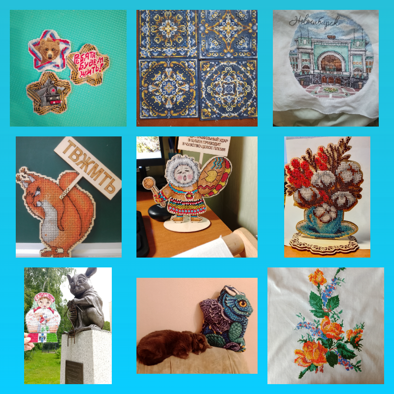 Но и про хобби не забывала. Даже в один коллаж все работы не влезли, а круглый гипнокот где-то потерялся.
