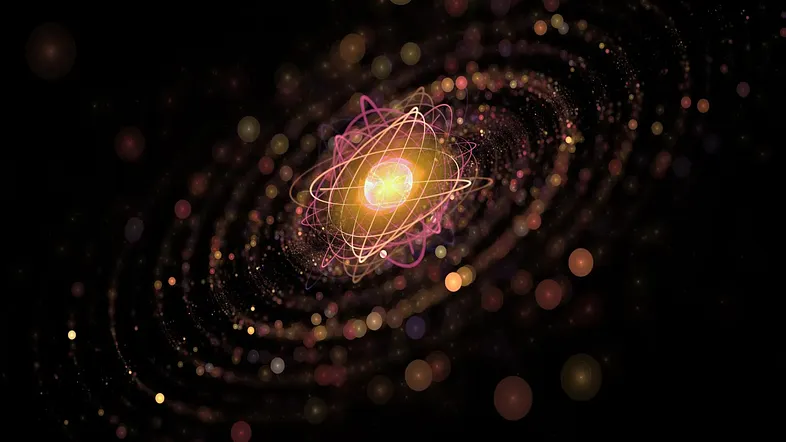 Таким образом, атомные ядра состоят из положительно заряженных протонов и электрически нейтральных нейтронов, которые, в свою очередь, окружены очень лёгкими, отрицательно заряженными электронами, завершающими структуру атома. Эти атомы затем могут соединяться друг с другом — как предполагал Демокрит более 2000 лет назад — в молекулы и более крупные структуры, составляющие наш макроскопический мир. Их количество не бесконечно, но чрезвычайно велико и поддаётся подсчёту; именно эти субатомные компоненты, объединяясь, формируют всю реальность.
