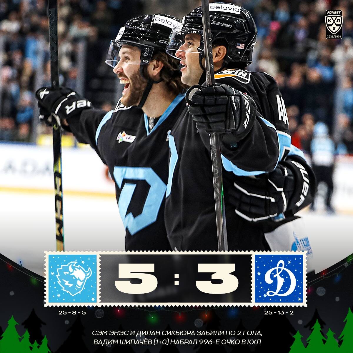 🦬 Минское «Динамо» победило в 1000-м матче Дмитрия Квартальнова в КХЛ!
