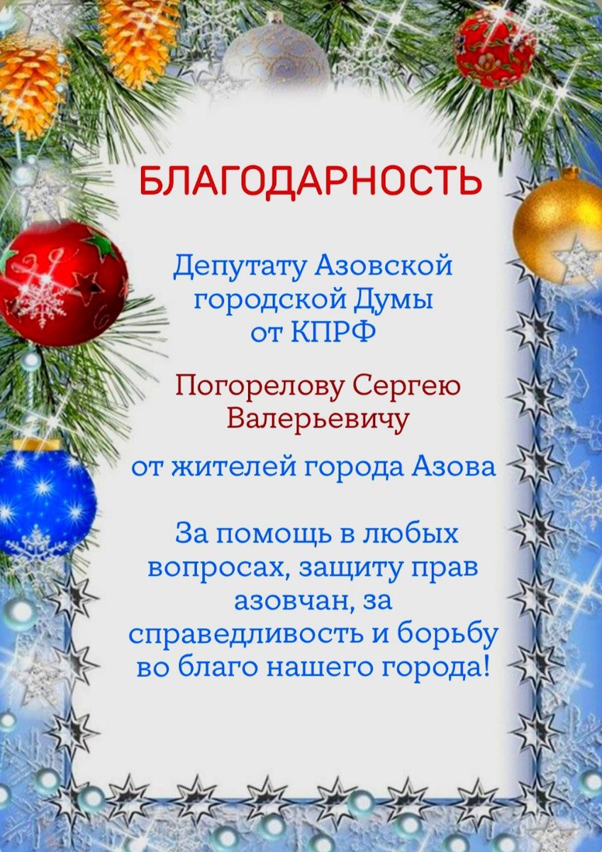 ❤️. Сергей Валерьевич, благодарим Вас за Ваш труд, за Ваш вклад во благо развития нашего города, за колоссальную помощь во многих ситуациях, за решение многих проблем. Азовчане от всей души поздравляют Вас и Ваших близких с Наступающим Новым годом! ❄️❄️❄️✨✨✨ Желаем Вам здоровья, побольше позитивных эмоций, благополучия во всех Ваших делах, всего самого доброго, тёплого и светлого!!! ♥️ #Россия #Азов #Азовгород #Азоввести #Ростовскаяобласть #азовчане
