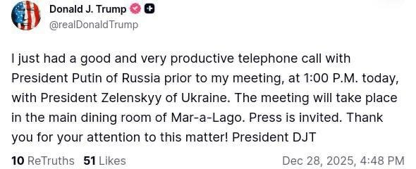 Трамп заявил, что только что провел "очень продуктивную беседу" с Путиным накануне встречи с Зеленским