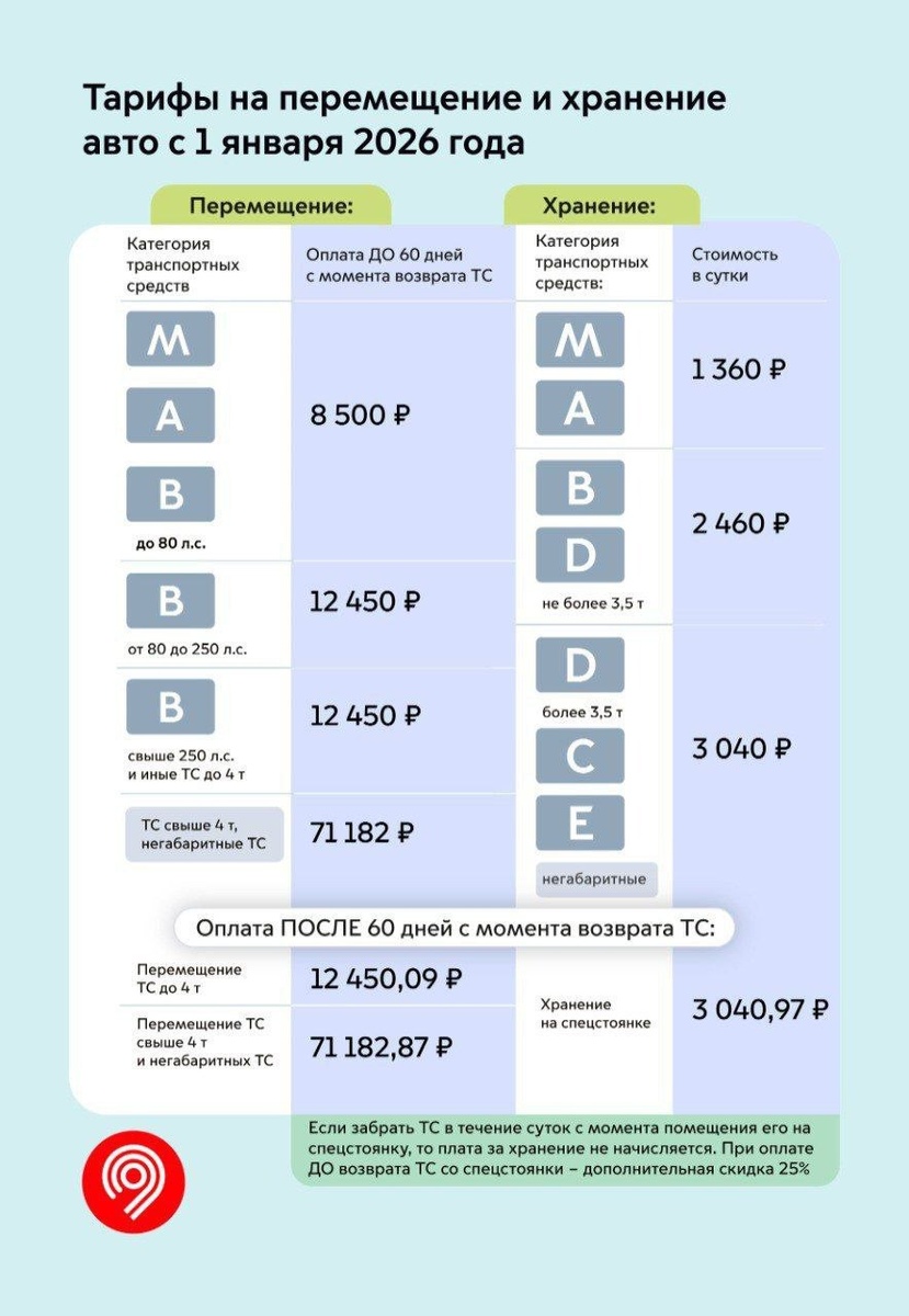 Хранение на спецстоянке — 2 460 рублей за каждые сутки после первых.