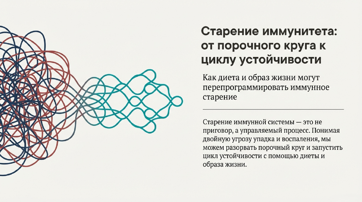 Проведенный анализ убедительно демонстрирует, что иммунное старение — это не неизбежный и линейный упадок, а динамичный, многофакторный и, что наиболее важно, поддающийся модуляции процесс. Взаимосвязанные явления иммуностарения и воспалительного старения формируют порочный круг, который лежит в основе большинства возрастных патологий. Ключевой вывод заключается в том, что глубокая взаимосвязь иммунной, метаболической и микробной систем является не просто особенностью старения, а главной причиной, по которой интегрированные, многодоменные вмешательства (диета, физическая активность, сон) являются не просто полезными, а механистически необходимыми для эффективной модуляции.