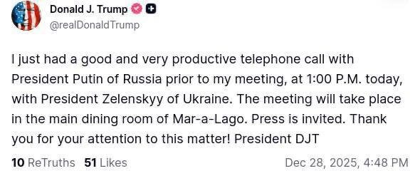 Трамп заявил, что провел телефонный разговор с Путиным в преддверии переговоров с Зеленским. Президент США назвал беседу «хорошей и очень продуктивной». 👍«БайБайден» в МАХ