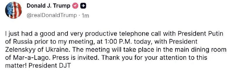 π Π’ΡΠ°ΠΌΠΏ ΡΠΎΠ·Π²ΠΎΠ½ΠΈΠ»ΡΡ Ρ Π’Π΅ΠΌΠ½Π΅ΠΉΡΠΈΠΌ