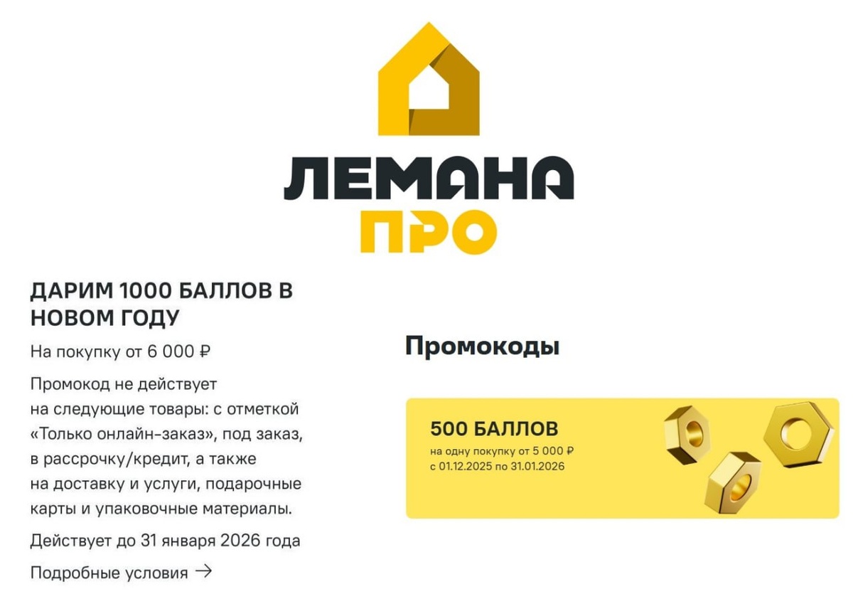 🔓 Лемана Про (Leroy Merlin) - начисление до 1 000 баллов