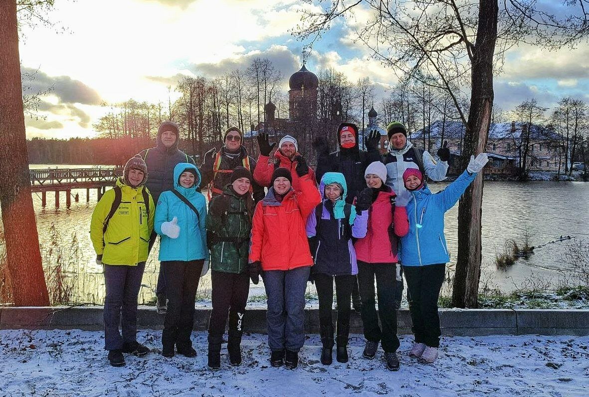Затем прошли вдоль реки Киржач с её красивыми берегами. Видели сосны с чудотворными корнями, а также большие дубы — как одиночные, так и целые дубравы. Далее наш путь следовал через деревню Заднее Поле со старыми деревянными домами, украшенными резными наличниками. По хорошей тропинке через лес мы вышли к озеру Введенскому, где перед нами открылся вид на Свято-Введенскую Островную Пустынь. Местный храм был основан ещё в конце XVII века. После этого мы в