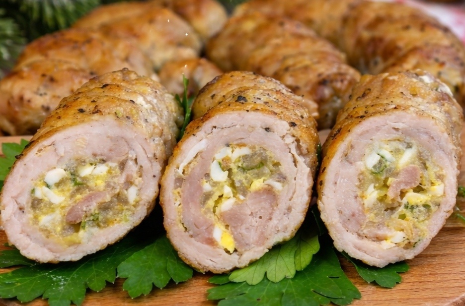Варёные яйца мелко нарезаем, соединяем с обжаренным луком, добавляем рубленую петрушку, панировочные сухари и сливки. Солим, перчим, хорошо перемешиваем.