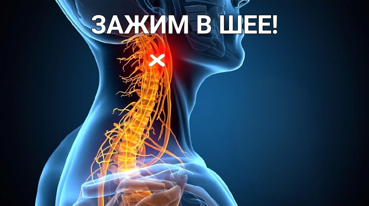 Нащупайте на шее сбоку (над ключицей) плотные тяжи. Мягко промните их пальцами. Если найдете болезненную точку - задержитесь на ней, пока боль не стихнет.