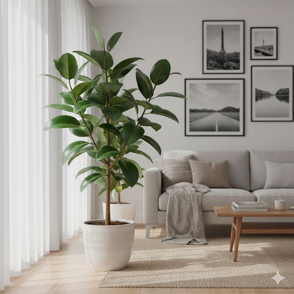 Фикус эластика робуста — это надежный телохранитель в идеально скроенном темно-зеленом костюме. Он стоит в углу, молчалив и непоколебим, и кажется, что его невозможно вывести из себя. Многие его обладатели ценят его за монументальность и этот невероятный, почти черный глянец листьев, который выглядит как живой винил. Давайте разберем историю этого атланта и поймем, почему он — лучший выбор для тех, кто хочет джунгли без лишней драмы. Мы привыкли видеть его в интерьерах, но мало кто знает, что за этими плотными листьями стоит история великих открытий и удивительной природной мощи. Родина нашего героя — влажные тропики Индии и Индонезии. В природе Ficus elastica — это колоссальное дерево, достигающее 30-40 метров в высоту. Своё название «каучуконосный» он получил не просто так: до того, как человечество открыло гевею, именно этот фикус был главным источником натурального каучука. Сорт 'Robusta' был выведен селекционерами как «улучшенная версия» природного вида. Он стал более компактным,