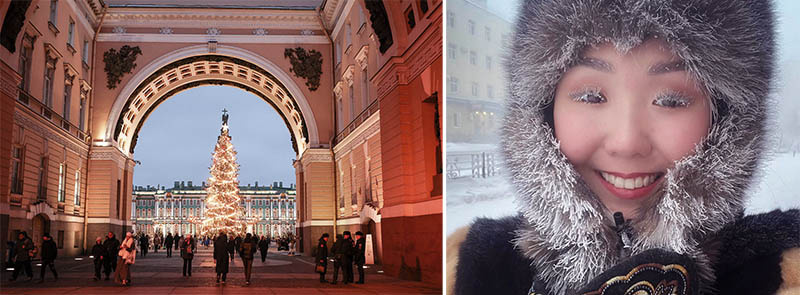 RT публикует видео, на котором жительница Якутии демонстрирует, как одеваются, когда на улице температура в -50 градусов. Россия готовится к любимому празднику — Новому году, который приходится на зимнее время. А это значит, что большая часть населения страны жаждет снега и сопутствующих его присутствию развлечений: катаний на лыжах и санках, прогулок при живописно заснеженных деревьях. Но природа в России или сурова, или переменчива, или до нельзя непредсказуема. Например, в Якутии мороз -50. Но это не мешает людям жить. Более того, именно специфика и причуды природы сформировали на территории бывших стран СССР особый менталитет — иррациональный, размашистый, всегда спешащий на взаимовыручку. А иначе как? Ведь природа постоянно подкидывает сюрпризы. В каждом регионе они свои, но всегда неожиданны. В Санкт-Петербурге, например, недавно два дня лежал снег, а через день — штормовой ветер, который нанёс немало вреда. Примерно в то же самое время в Подмосковье за ночь выпала треть ме
