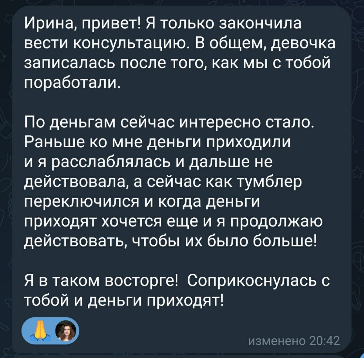 Эти изменения после сеанса с маятником, двух групповых погружений, которые у нас прошли в программе Переход, когда мы экологично завершили 2025 год и выбрали самую лучшую ветку вероятности на 2026, и плюс короткие практики, которые я даю в Переходе ✨✨✨