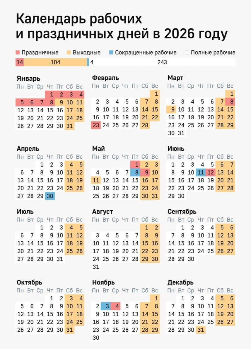 🥳 В 2026-м россиян ждёт год без шестидневных рабочих недель.