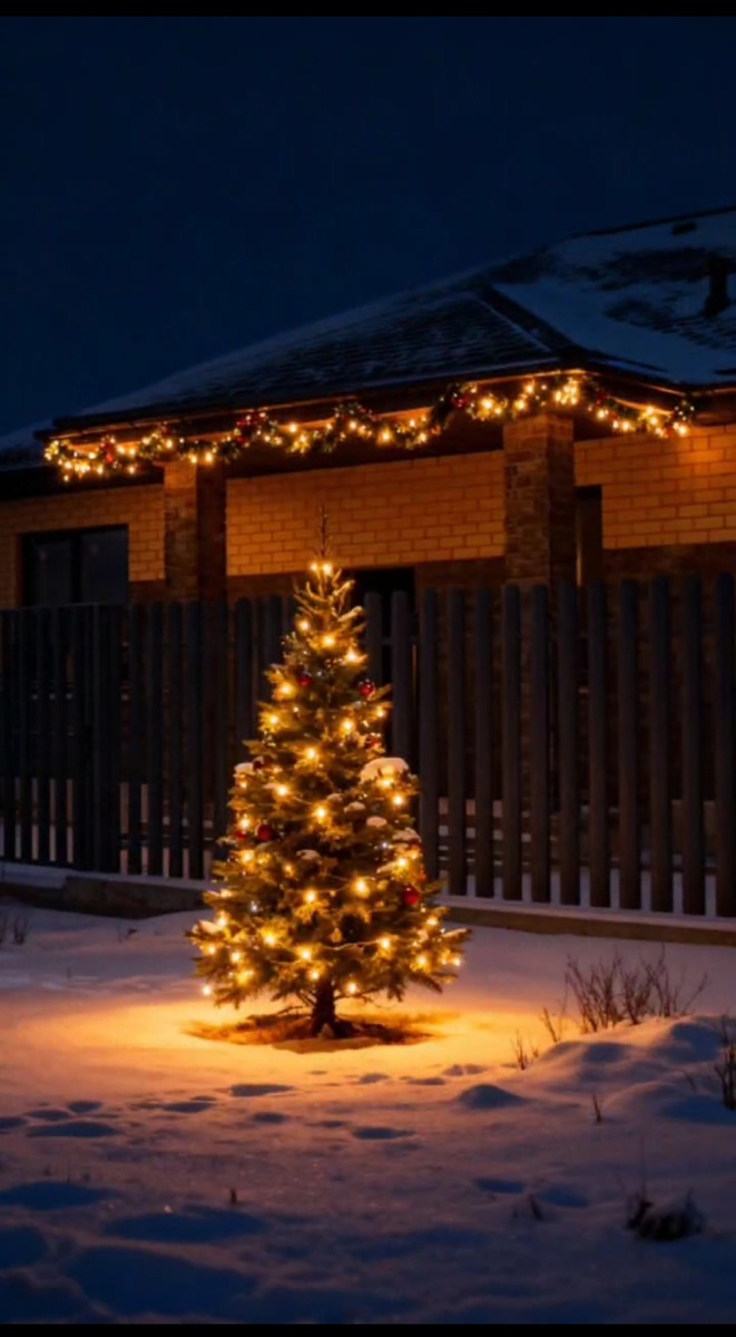 Таким может быть и ваш дом:) Что нужно для этого? • Замерь фасад: карниз/фронтон/вход/калитка, отметь места розеток. • Разбей на 2 группы: «дом» и «ёлка» — отдельные розетки/таймеры. Электрика и защита • Уличные розетки IP65 с крышкой (2 шт минимум), отдельный автомат 10–16А + УЗО 30 мА. • Кабель ПВС 3×1.5 в гофре/коробе UV; соединения только в гермобоксах IP65, термоусадка с клеем. • Умная розетка/астротаймер для авто‑включения. Гирлянды/оборудование • Уличные гирлянды IP65: «нить/бахрома/контур/дюралайт», тёплый белый 2700К. • Один стандарт на весь контур (одного производителя). • Контроллер/диммер по желанию. Если 24В — блок питания в гермобоксе. Крепёж • Клипсы/кронштейны для карниза, UV‑хомуты. Без саморезов в кровлю и без скотча. • Не вести кабель по острым кромкам, не зажимать металлом. Ёлка во дворе • Гирлянды на каучуковом кабеле (морозостойкие), питание снизу. • Блок питания/тройник в гермобоксе у основания, подвести кабель в ПНД‑трубе, приподнять над снегом. • Намо