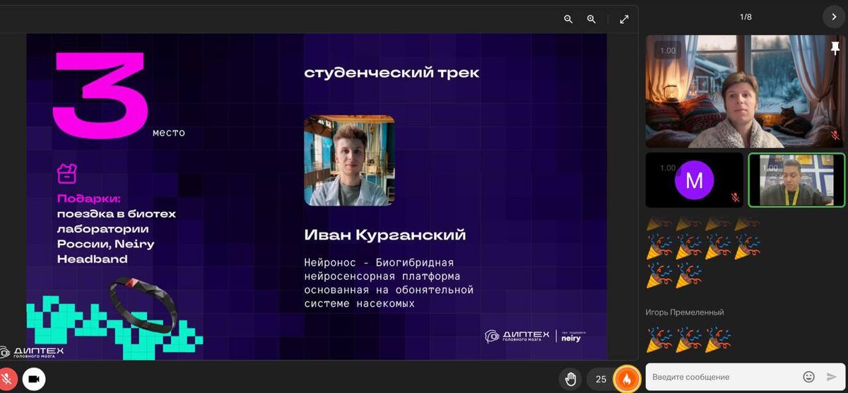Под конец года стал изобретателем. Занял третье место в нейротех соревнованиях с технологией биосенсорной платформы на основе антеннографии пчёл. В 2026 получу за это ЭЭГ-сетап, который точно интегрирую в психотерапию — ждите. В научных статьях он тоже поучаствует. Ну и попаду на экскурсии по биотех лабам России. Зафиксирую тут для истории: Март 2025 — я попадаю в Сириус на нейротех программу и впервые узнаю про нейробиологию, нейротехнологии и диптех. Декабрь 2025 — выходит моя научная статья про нейробио на XII РОССИЙСКОМ ФОРУМЕ БИОТЕХНОЛОГИЙ и я беру 3 место в соревнованиях по нейротехнологиям. Секрет прост: я внимательно читаю свои посты про эпистемологию, акмеологические методы и аксиологические структуры личности.