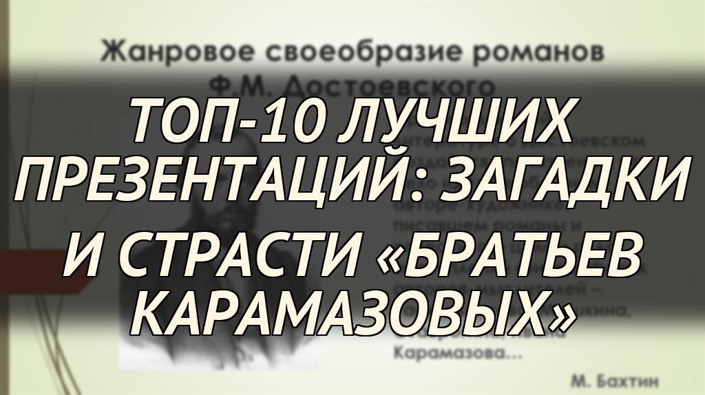 В этой статье мы собрали топ-10 лучших презентаций о «Братьях Карамазовых», отобранных на основе их творческого подхода, глубины анализа и способности вовлекать аудиторию. Каждая из них демонстрирует уникальный взгляд на шедевр Достоевского, будь то через призму философии, кинематографа или даже социальных сетей. Эти работы помогут вам по-новому взглянуть на конфликт братьев Карамазовых и осмыслить собственные жизненные вопросы.