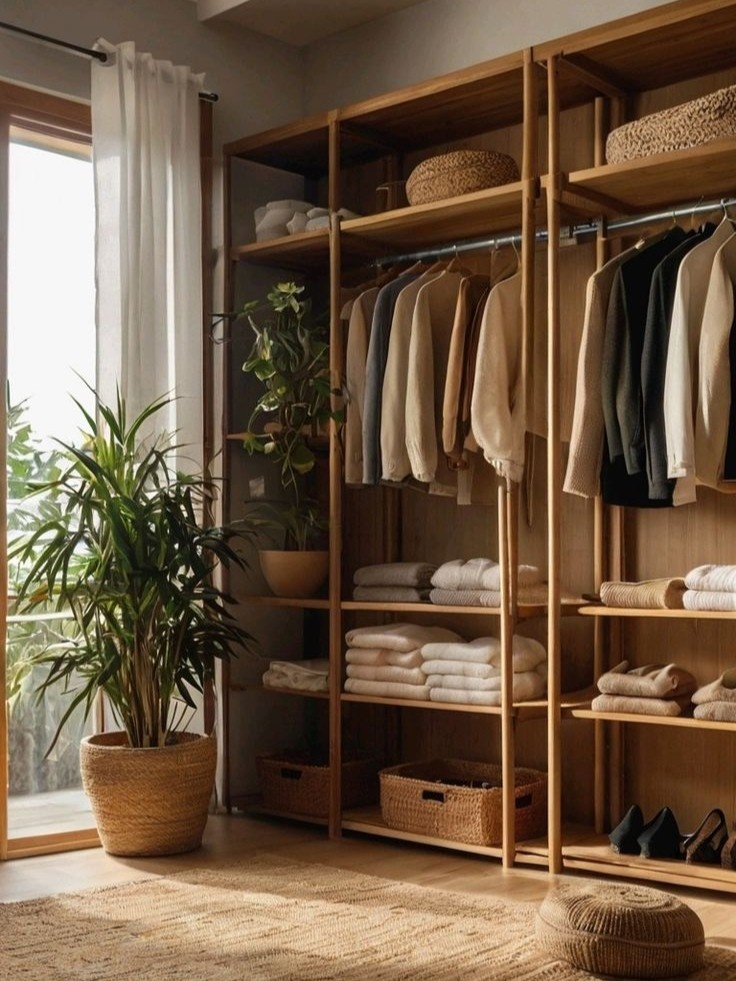 Как недорого организовать хранение одежды? Итак, какие варианты имеются в открытом хранении: 1️⃣Полностью открытые вешала и полки 2️⃣Вешала открытые, полки и ящики закрыты 3️⃣Закрыто все шторами По монтажу можно разделить: 1️⃣Отдельностоящие стойки 2️⃣Монтируемые на стены стойки 3️⃣Частично монтируемые Полностью открытые стойки уместны в прихожей, на мой взгляд. Либо как временное хранение одежды. Потому что пыль все равно садится на одежду. И если одежды много, большую часть она висит без дела - пыль будет въедаться в одежду, как ни крути. Зато по стоимости это самый недорогой вариант. И если сейчас стоит вопрос - купить шкаф или сделать ремонт в ванной, я бы посоветовала ремонт в ванной. Шкаф всегда можно докупить. А вот без ванной комнаты жить как-то не очень. Да и быстро переделать ванную тоже не получится, в то время как шкаф поехал и купил. Ну и лайфхак: если предполагается, что такие стойки у вас будут стоять год-два, а то и больше, то лучше закрыть их шторами и сделать типа га