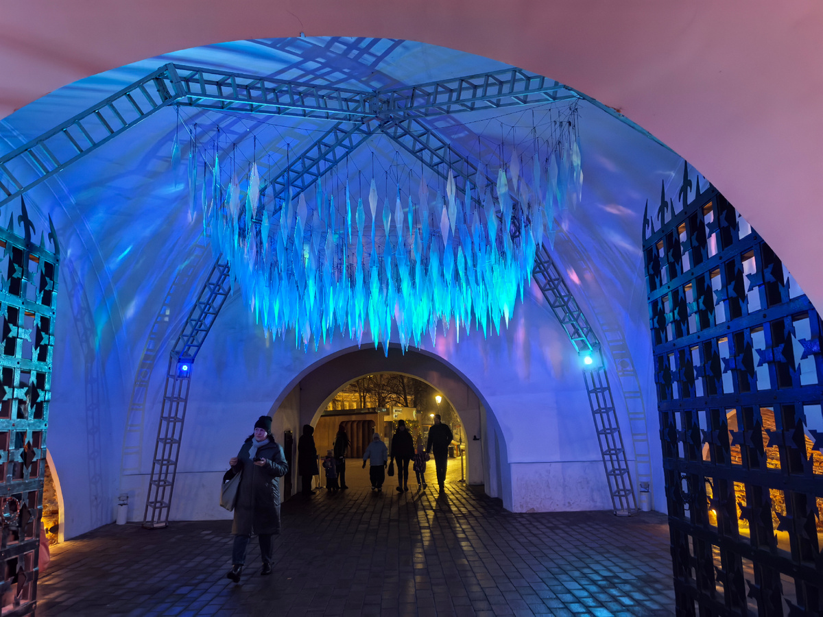 До боя курантов остаются считанные дни, а настоящая зима, наконец, подарила городу хрустящий снег и легкий морозец. Кажется, сам Нижний Новгород, целый месяц наряжавшийся в огни, облегченно вздохнул: теперь праздничное убранство обрело свою законную, искрящуюся оправу. Гирлянды и инсталляции больше не кажутся чужеродными – их мягко укутал пушистый снег. Прогулка по предновогоднему городу показывает: волшебное настроение для горожан и туристов создают не только власти, но и бизнес, зачастую подходя к делу с неожиданной фантазией. Давайте вместе пройдемся по самым ярким локациям и посмотрим, как готовится к празднику столица Приволжья. Сердце города, кремль, в этом году преподносит сюрприз. Главный вход через Дмитриевскую башню превратился в портал… в сияющую ледяную пещеру. Такое оформление, мне кажется, здесь можно увидеть впервые. А между зданиями правительства и Заксобрания вновь установили традиционную елку в обрамлении световых кокошников. Если честно, по моему субъективному мнению
