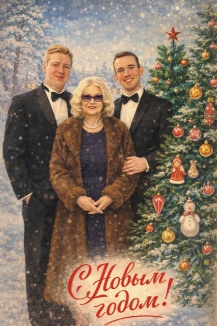 Здравствуйте все, кто меня читает. Муж , Слава Богу, чувствует себя уже хорошо и в ночь на Новый Год выходит работать. Так по графику у него выходит, 30 декабря закроют ему больничный, а 31 на смену. А вот я борьбу с болячкой пока проигрываю. Врачей у нас в поликлиники практически не осталось, лечили меня там - пока чуть не залечили))) Хорошо что догадалась я обратиться к платному доктору. Сейчас следую его назначениям и понемногу стала выкарабкиваться! Больничный , скорее всего продлят аж до 6 января. Ну не будем о грустном- впереди праздники и надо настраиваться на позитив. Очень порадовал нас сын- сдал сессию на отлично. Вот такое фото прислал- в ретро стиле)) В центре его преподаватель по вокалу- народная артистка РФ Зоя Солодилова- Митрофанова! Завтра сын уезжает с друзьями в Питер. Встречать Новый Год в Санкт- Петербурге для ребят уже становится традицией. Прошлый ,2025 год , они тоже встречали в Питере! Ну а мы с мужем сегодня проехались по магазинам. Из за болезни совсе