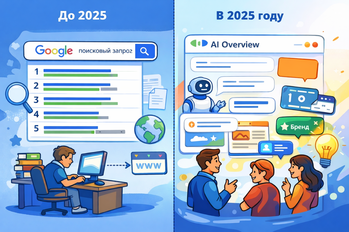 В 2025 году всё чаще результатом выдачи по запросу пользователя становился готовый ответ. Юзер получал структурированную информацию, пояснения, сравнения и визуальные элементы прямо в интерфейсе поиска, а переход на сайты становился дополнительным шагом, а не обязательной частью сценария.