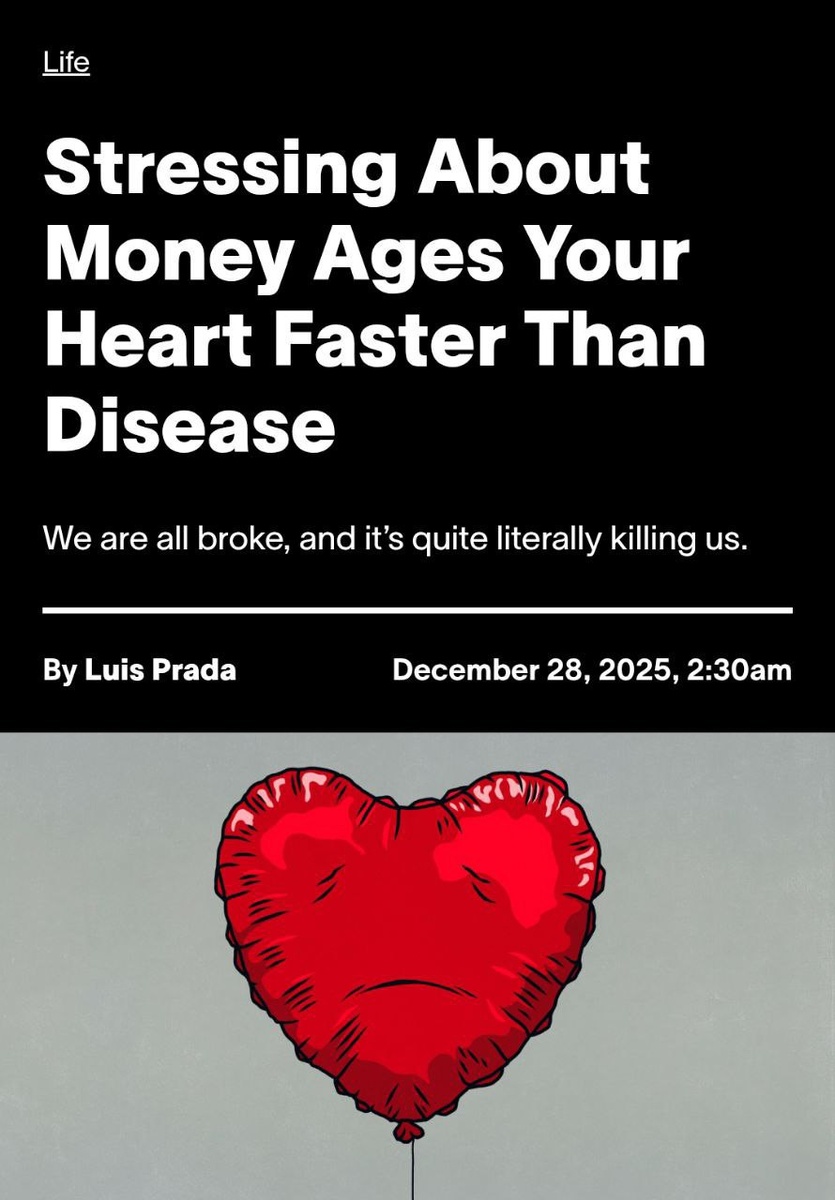 Стресс из-за нехватки денег убивает быстрее инфаркта, выяснили учёные: анализ 300 тысяч кардиограмм с помощью ИИ показал, что бедность повышает риск смерти на 60%, тогда как перенесённый сердечный приступ — лишь на 10%, при этом постоянные мысли о счетах и долгах ускоряют износ сердца сильнее, чем диабет и гипертония, из-за хронического стресса, воспаления и постоянного выброса гормонов тревоги.