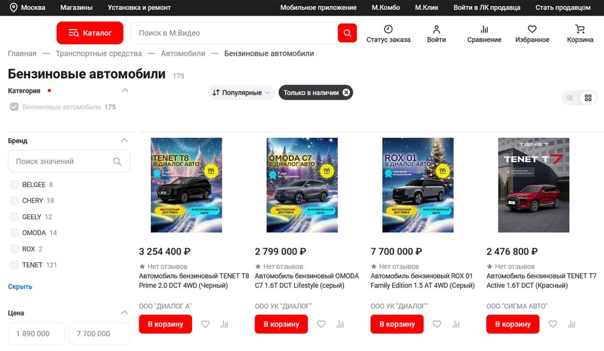 Компания М.Видео (да-да, та, что продаёт электронику и бытовую технику) совместно с цифровой платформой E.Car запустила продажи автомобилей. На старте доступны модели от ₽1,9 до ₽7,7 млн: TENET, Chery, OMODA, Belgee, Geely и ROX, то есть массовый сегмент, но без ру-тачек (ну, хз, Лады как раз являются самым массовым сегментом в РФ). Расширение ассортимента планируется за счёт новых партнёров. Покупка оформляется онлайн, выполнение заказа и доставку организуют официальные дилеры, которые связываются с покупателем после оплаты. Услуга пока недоступна на Дальнем Востоке. Запуск сосредоточен в Москве, Санкт-Петербурге, Казани, Нижнем Новгороде, Краснодаре и других крупных городах. Исполнительный директор М.Видео Владислав Бакальчук (опа, а муж Татьяны Ким не остался с голой попой) отметил, что покупатели хотят экономить время и готовы приобретать автомобили онлайн, если всё будет понятно и просто, без лишней бюрократии. Фантазёр какой-то. Сомневаемся, что покупка авто станет такой же