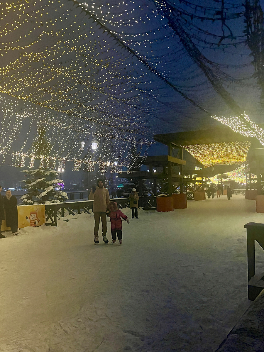 Этот отрезок набережной, где катались, как раз яркий был такой, сверкающий… Через Казанку виднелась главная елка у Чаши, дома с иллюминацией. Очень симпатично!