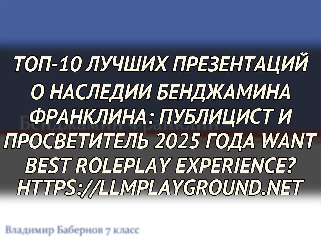 В этой статье мы представляем топ-10 лучших презентаций на тему "Бенджамин Франклин публицист", которые выделяются креативностью, исторической точностью и актуальностью для нынешней аудитории. Эти презентации, созданные экспертами и любителями, демонстрируют разнообразие подходов — от цифровых слайдов с интерактивными элементами до традиционных лекций, помогая глубже понять, как Франклин мастерски манипулировал общественным сознанием через публицистику.