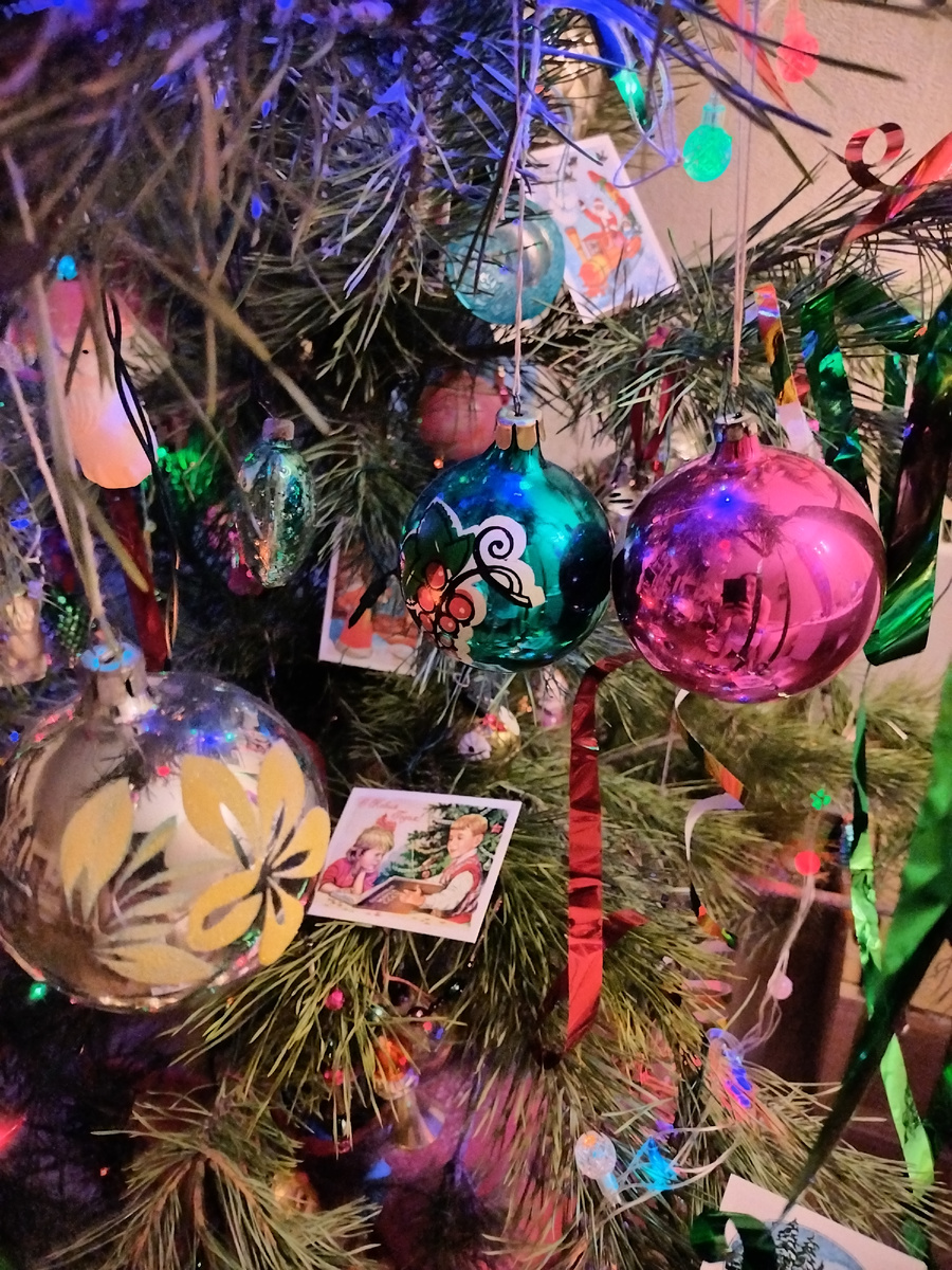 В этом году, на Новый год решили мы, поставить живую Красавицу - ёлочку... Чтобы иголочки кололись, как в детстве... Чтобы, по дому шёл ароматный запах смолки и хвои... А, украсили нашу Красавицу- новогодними советскими игрушками.