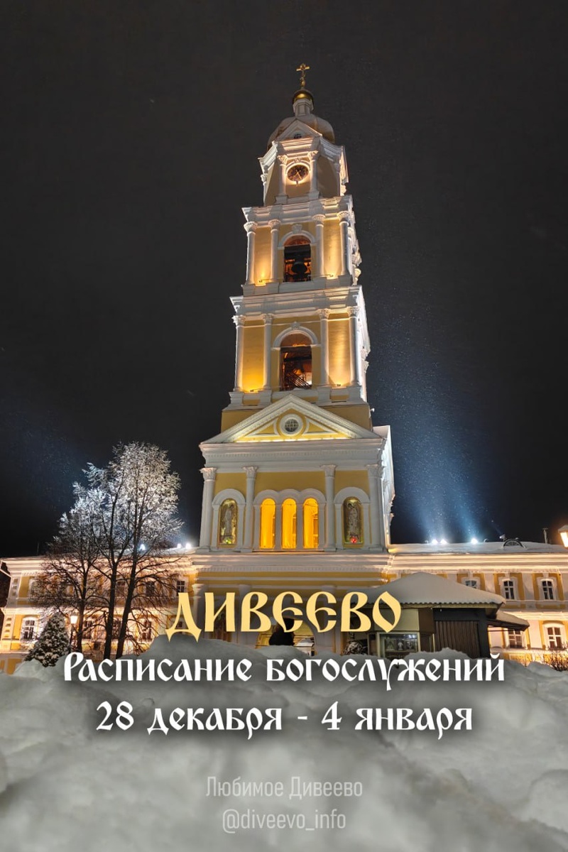 ☦️ Расписание богослужений в Свято-Троицком Серафимо-Дивеевском монастыре и храмах села Дивеево с 28 декабря 2025 по 4 января 2026 года.