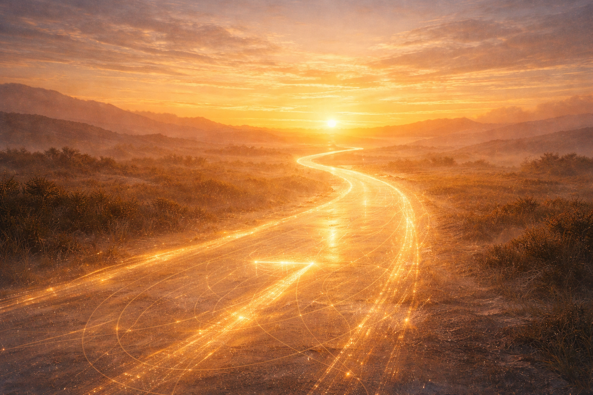 Впереди начинает проступать дорога. Она не идеально ровная и не прямая, но в ней есть свет. Это не маршрут «как правильно» и не путь, который кто-то одобрил заранее. Это дорога твоей мечты — не в виде конкретной картинки, а в виде ощущения направления, где внутри становится чуть теплее и свободнее.