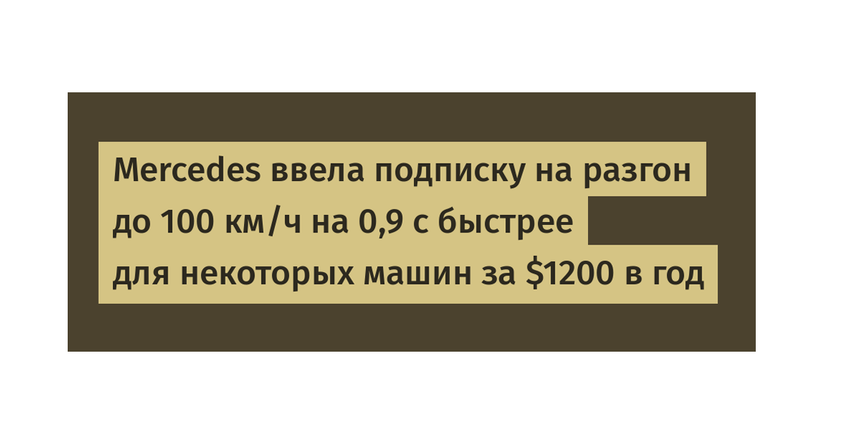 Сегодня на той же дорожке и Mercedes с их подпиской на увеличенный угол поворота задних колес и Tesla, которая фиктивно уменьшает емкость батареи. Самое обидное здесь то, что если вы решите продать машину, все услуги следующий хозяин машины так же должен будет активировать. По сути, машина превратилась в смартфон на колесах, где за каждое приложение нужно доплачивать.
