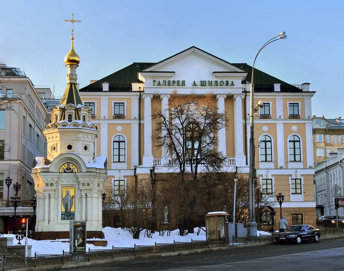 На этом месте к историческому зданию под номером 5 в 1830-х гг., (архитектор Е.Д. Тюрин) было пристроено трехэтажное новодельное с парадным входом в шиловскую галерею со стороны Боровицкой площади. На фасаде в портике над входом золочеными буквами торжественно выложено: «Галерея А. Шилова».