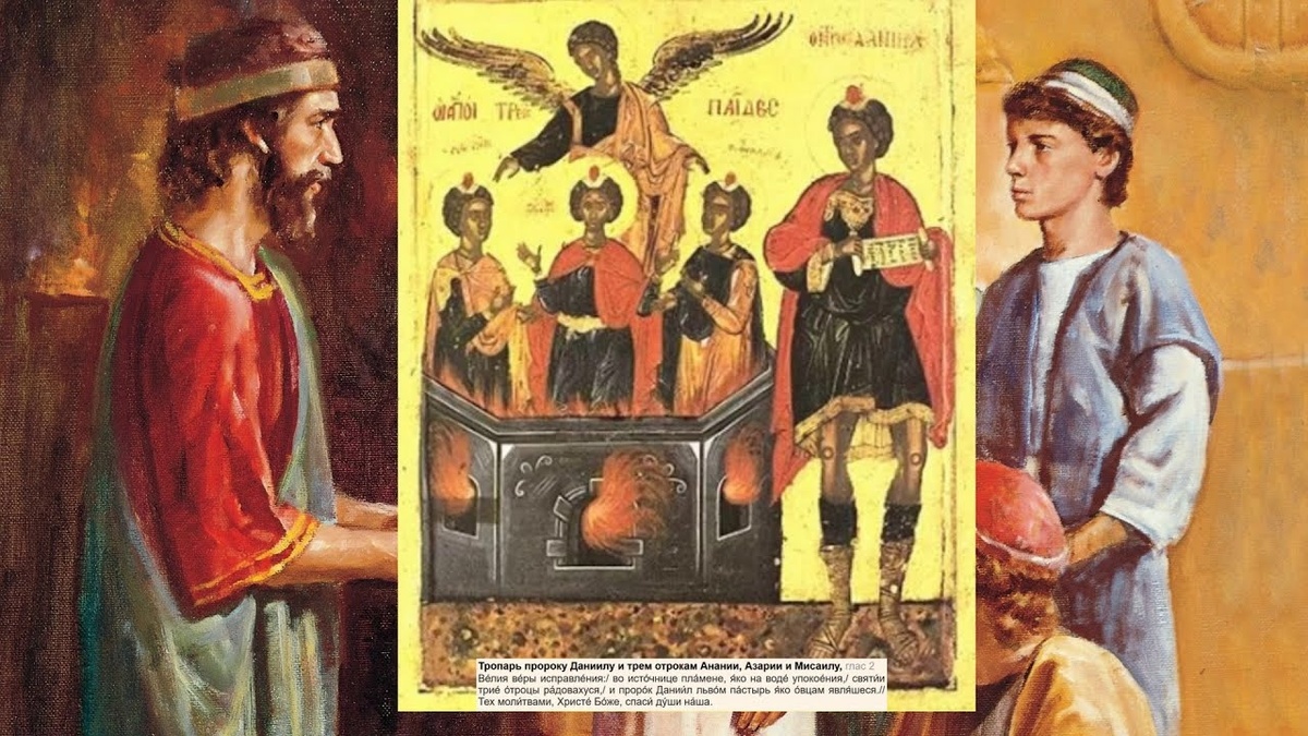 Святые, которых мы чествуем в этот день, были юношами из знатных семей Иерусалима. Когда город покорил вавилонский царь Навуходоносор, они оказались в плену. Царь, заметив их ум и благородство, взял их ко двору, где им открылась жизнь в роскоши. Но сердца юношей оставались верны Богу и родным обычаям. Они выбирали простую пищу и воду, сохраняя смирение и чистоту души. За эту преданность Бог одарил их великой мудростью, а Даниилу дал особый дар — понимать и толковать сны.