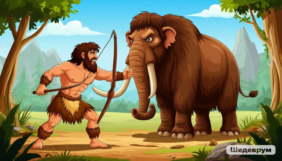 Но грозный взгляд супруги, приправленный палкой- мешалкой в два обхвата, четко сказал, что без мамонта пути ему назад нет!