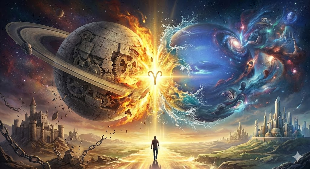 Хотя предстоящее событие уникально из-за точки «0 градусов Овна», сама по себе встреча этих двух планет всегда приносит один и тот же сценарий: «Растворение Структуры». Сатурн строит стены, а Нептун их размывает.
