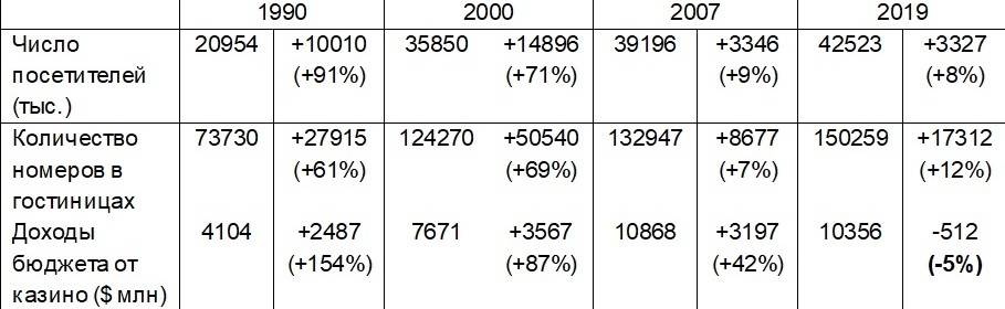 Уже по приезде я посмотрел на статистику. Может быть, это всё только мое воображение или плохое настроение? Нет, цифры тоже очень хорошо показали, что происходило в Лас-Вегасе в последние десятилетия[1].