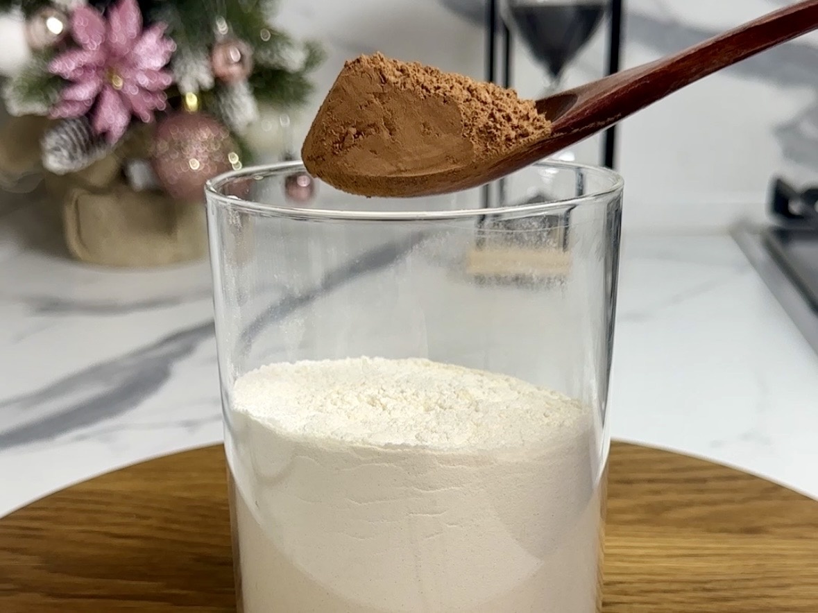 - В отдельной миске соединить все сухие ингредиенты: муку, какао, соду и разрыхлитель. Перемешать венчиком и отставить.
