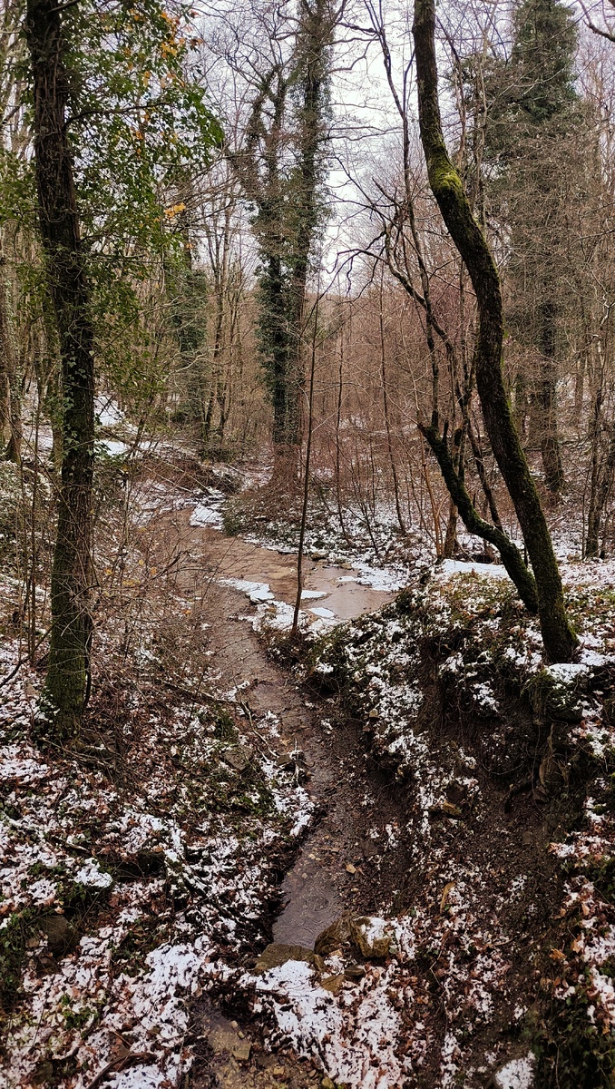Сверху раздаётся странный шум, словно где-то летит вертолёт, стая беспилотников или приземляется дракон — взглянув наверх, я увидел кроны деревьев, раскачивающихся на столь сильном ветру, что они создавали этот жуткий шум, но здесь, внизу, под защитой скалистых склонов, ветра не было. Лес шумел, словно недовольный тем, что его разбудили посреди зимы.
