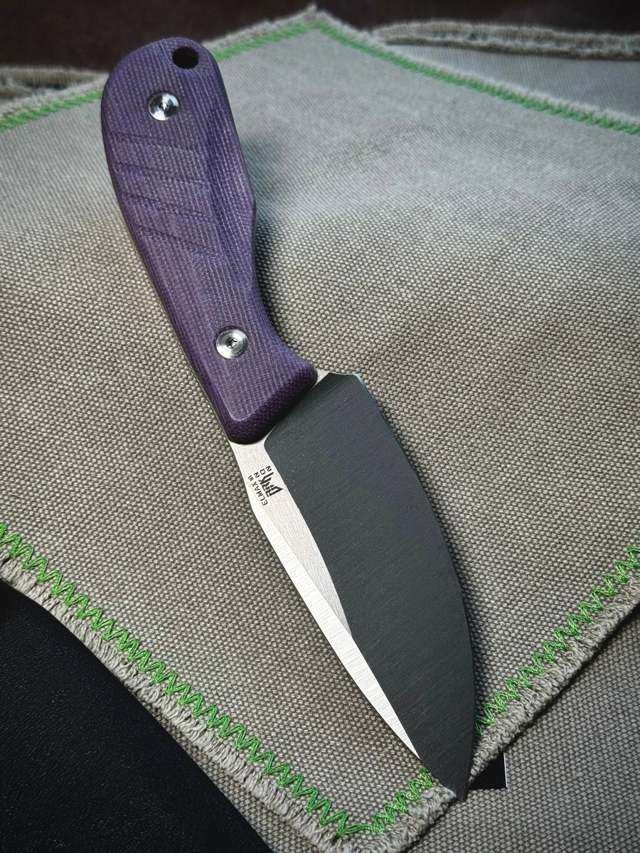 Клинок выполнен из стали Elmax, а на эргономичной рукояти микарта.
