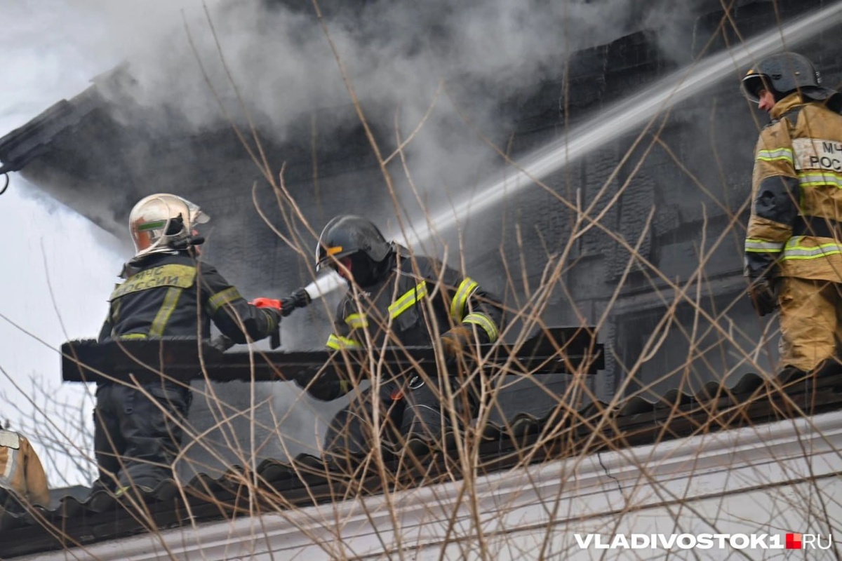 Еще несколько кадров тушения Дома Смитов в центре Владивостока.